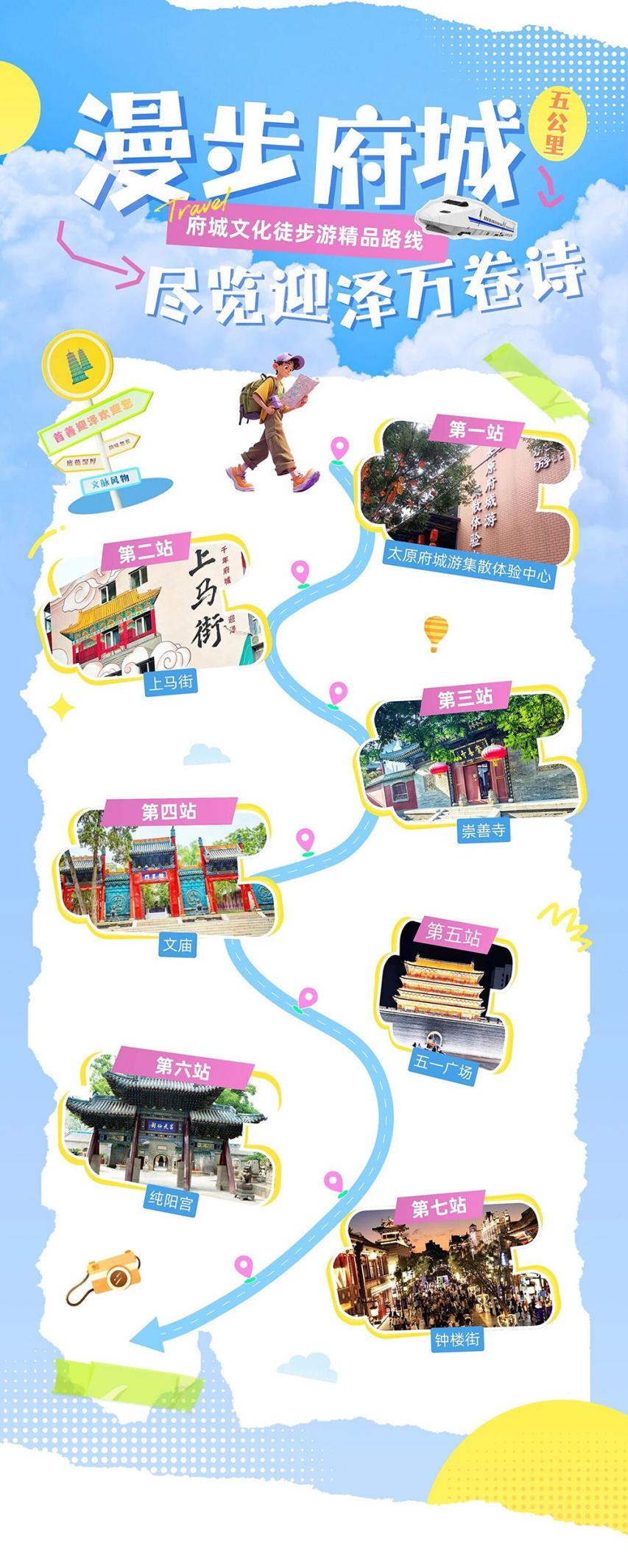 游玩线路:太原府城游集散体验中心→上马街→崇善寺→文庙→五一广场→纯阳宫→钟楼街
