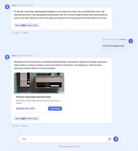 ·危机转商机: 当老客户反馈桌子损坏,带有记忆的AI知道这位客户是“品质控”,在安抚的同时主动推送:“我们为您提供$50的以旧换新补贴,您可以选择升级到我们最新款的高端桌型。” 把原本的纯赔付客诉转化为二次销售。