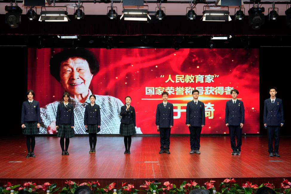 本届大赛特别设置缅怀于漪老师环节。首先播放追思短片,追思这位大赛终身总顾问的教育风范。首届“恒源祥文学之星”获得者、北外附属田园高中文创办公室负责人吴玉琳老师创作诗歌《致于漪老师》,由田园学子深情朗诵,句句铭心,全场肃然致敬。