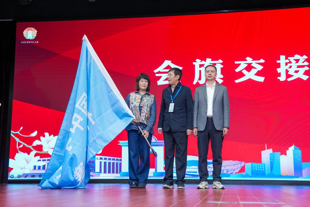 随后,中国中学生作文大赛组委会主任司惟从上海新知文化发展有限公司副总裁赵杰手中接过会旗,并转交给甘肃赛区组委会 王琰,这也预示着第二十二届中国中学生作文大赛总决赛暨颁奖典礼明年在甘肃兰州举行。