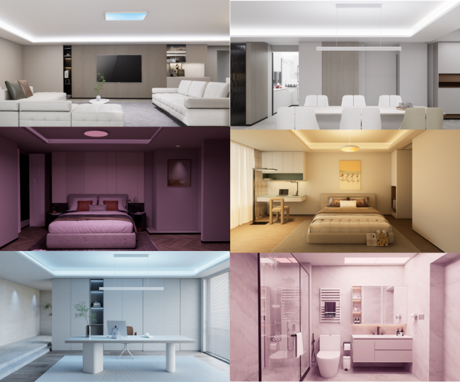 技术层面,天境家族依托全时日光光源、万四方精准控光芯片与光魔方动态算法三大技术突破,使其能够复刻全天候太阳光谱,为客厅、餐厅、卧室、儿童房、书房、浴室六大家居场景打造自然健康的光环境,真正实现“把阳光带回家”。