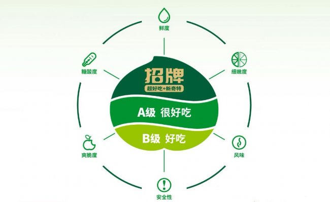 上游赋能标准化种植,是百果园提升果品品质的关键举措。为了让“好吃”有标准、品质可把控,百果园不仅引入全球领先的BLOF生态和谐型种植技术,深入合作基地指导土壤改良、果树养护与科学采收,还推出全球首创的“四度一味一安全”分级体系,从糖酸度、鲜度、脆度、细嫩度、香味、安全性六大维度,对鲜果进行精准分选。这一标准化体系彻底改变了水果行业“凭经验选品”的传统模式,让不同品质的鲜果精准匹配不同消费需求,也让百果园的果品品质始终保持稳定在线。