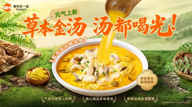 坚守极致产品主义,是鱼你在一起持续领跑中式快餐赛道的核心密码。此次草本金汤酸菜鱼的上市,既是品牌对产品创新的又一次探索,也是对消费者健康需求的精准回应。凭借差异化的核心卖点、严苛的品质把控,这款新品有望复制经典酸菜鱼的成功,成为品牌旗下又一现象级爆款。