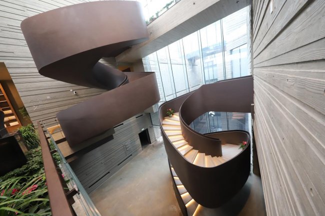 截至目前,善治楼梯的案例已覆盖全国200+大中城市,远销海外10+国家,涵盖住宅空间、商业地标、高端酒店、科技园区及文化场馆等多元场景。代表项目包括:中国首艘大型邮轮“爱达魔都号”钢构与玻璃组合楼梯、天津华为旗舰店悬挑旋转楼梯、深圳华为坂田总部螺旋形楼梯、汪曾祺纪念馆异形钢楼梯、上海巨人科技“S”型悬挑楼梯等。公司构建了“设计—生产—安装”全球一站式楼梯全案服务体系,提供从现场勘测、3D建模安全荷载分析、蓝图计算书到同步交叉施工的全流程无缝衔接,有效缩短工期并保证落地效果。