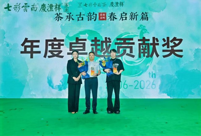 同时,大会晚宴举行年度表彰仪式,对二十年来不离不弃、携手共进的优秀合作伙伴、功勋员工及茶山基地代表进行隆重颁奖。正是无数同行者的坚守与付出,共同成就了七彩云南®庆沣祥®的二十年荣光。晚宴环节,茶香与欢歌交织,温情与敬意相融,全体嘉宾举杯共祝,致敬过往岁月,共启未来新篇。