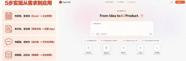 AI 软件工厂本次推出的五大核心能力,彻底打破了传统开发的技术壁垒,让“想法”到“产品”的转化缩短至秒级: