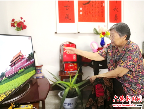 图为2021年7月1日上午8时,袁明娥老人生前带病观看在北京天安门广场隆重举行的庆祝中国共产党成立100周年大会现场直播。