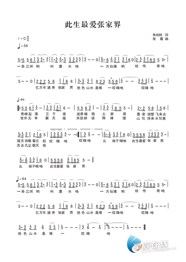 (《此生最爱张家界曲谱图》)