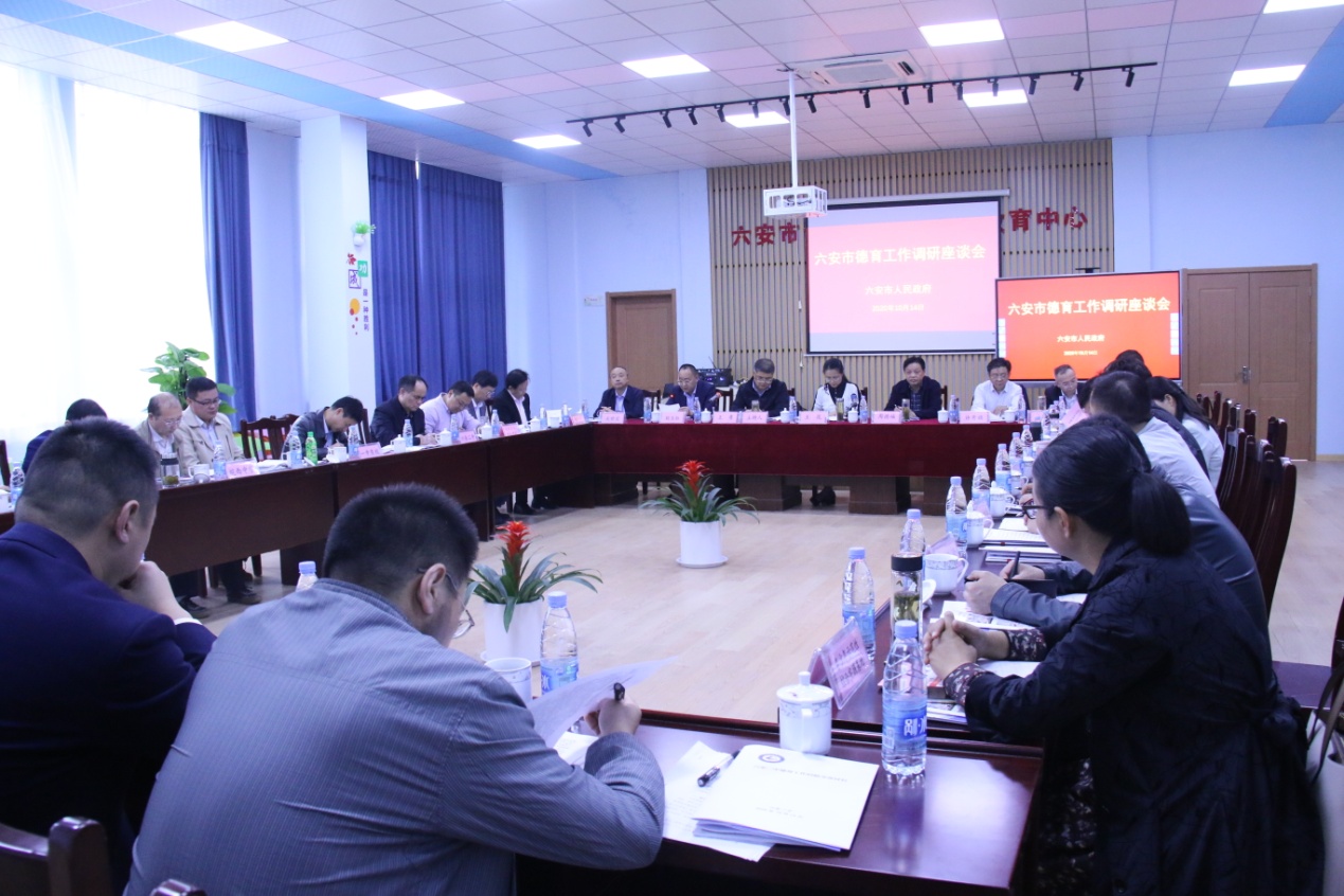 10月14日下午,六安市德育工作调研座谈会在我校成功召开,围绕全面贯彻党的教育方针,构建大中小学德育教育有效衔接、学校家庭社会三位一体育人体系,培养德智体美劳全面发展的社会主义建设者和接班人等课题开展调研。副市长王岚出席会议并讲话。