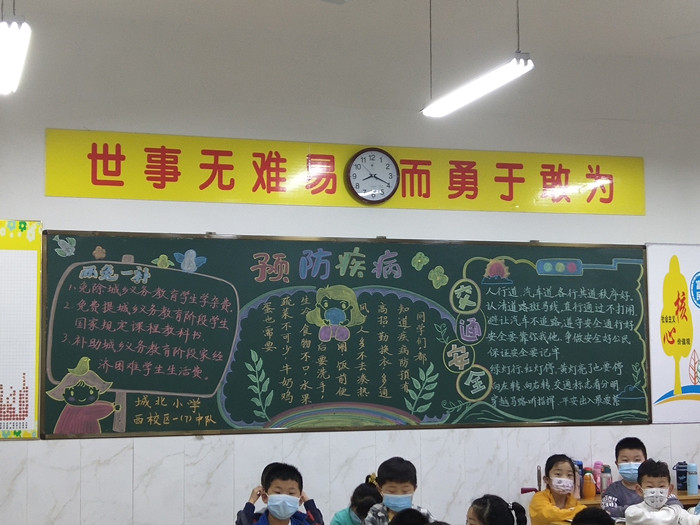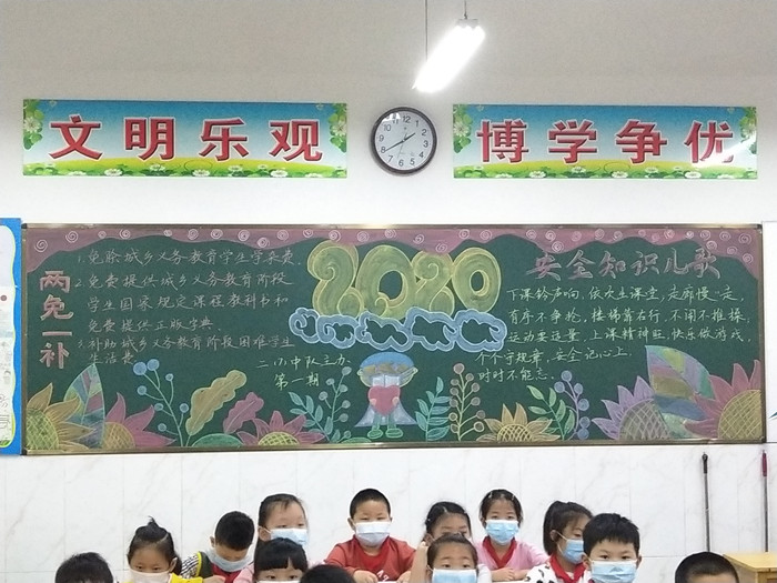 本次活动在各班主任精心的组织、引导下,围绕不同的“安全教育”主题为中心,以防疫、交通、食品、防溺水等为重点进行安全宣传教育。每一幅黑板报作品都设计美观新颖,色彩鲜明和谐,图文并茂地展示了城北小学两校区师生扎实的绘画及书写功底。件件作品凝聚了班主任的心血和同学们的智慧,也彰显了各班班级风貌,黑板报文化俨然已经成为一道亮丽的风景线。