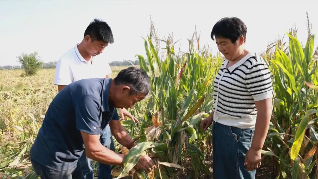 你看我们的玉米个大粒饱,今年的产量基本上都能达到亩产一千四五百斤,我们种粮农民有钱挣得实惠,我们种粮的干劲越来越足了。