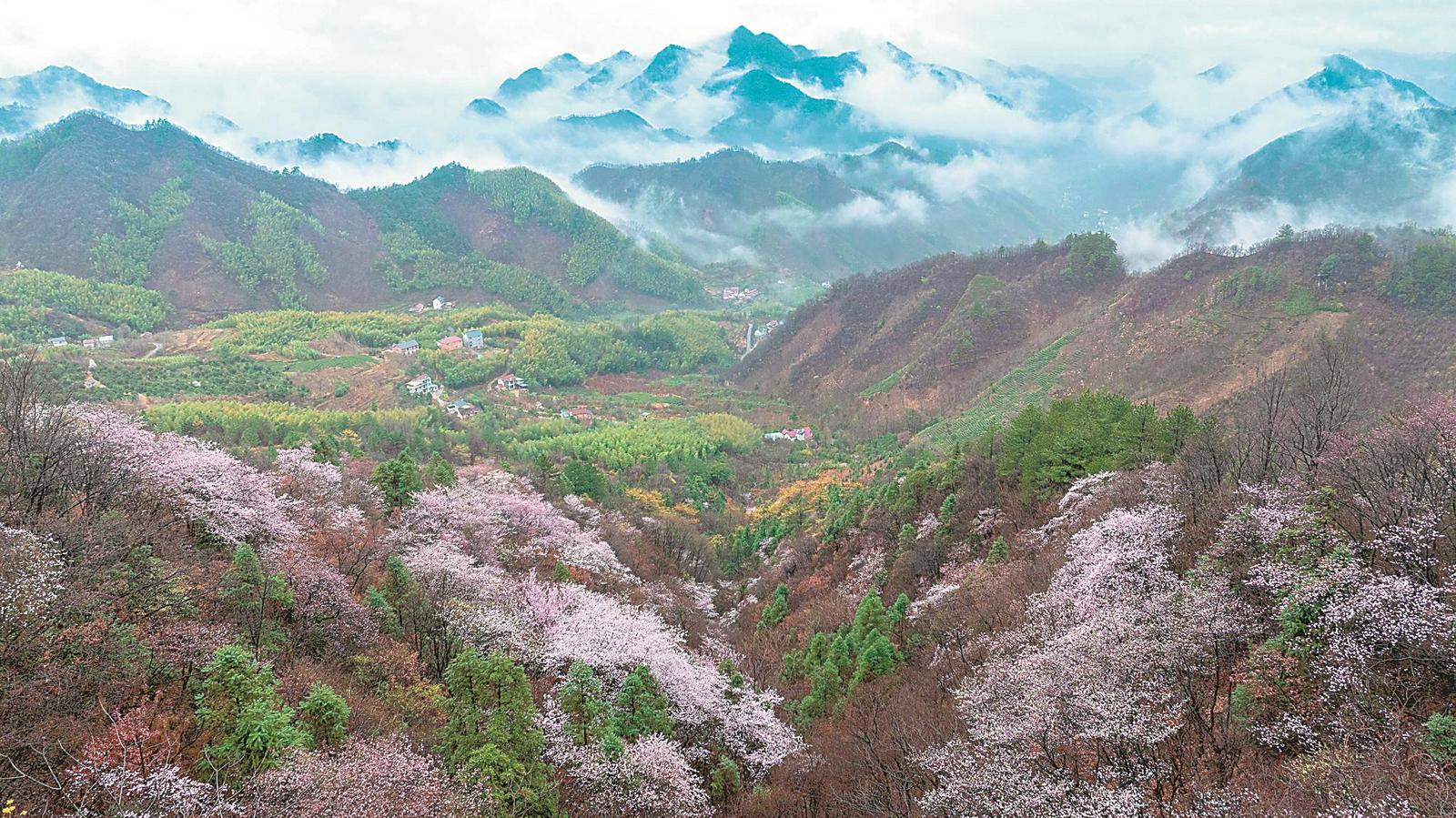 3月14日,宁国市万家乡野樱谷雨后初霁,云海奇观与万亩野樱构成一幅水墨画卷。通讯员 李晓红 摄
