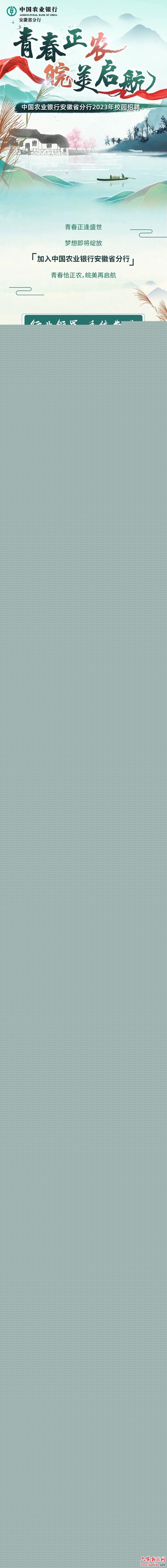 中国农业银行安徽省分行2023年度校园招聘 编辑:宋明俊 来源:本网原创 浏览次数: 次 发布时间:2022-10-13 09:08:15 【字体:小 大】 扫一扫在手机打开当前页 【打印正文】 上一篇:中国农业银行安徽省分行2023年度校园招聘 [ 2022-10-08 ] 下一篇:六安玺宴•宴会中心新厅启幕! [ 2022-10-27 ]
