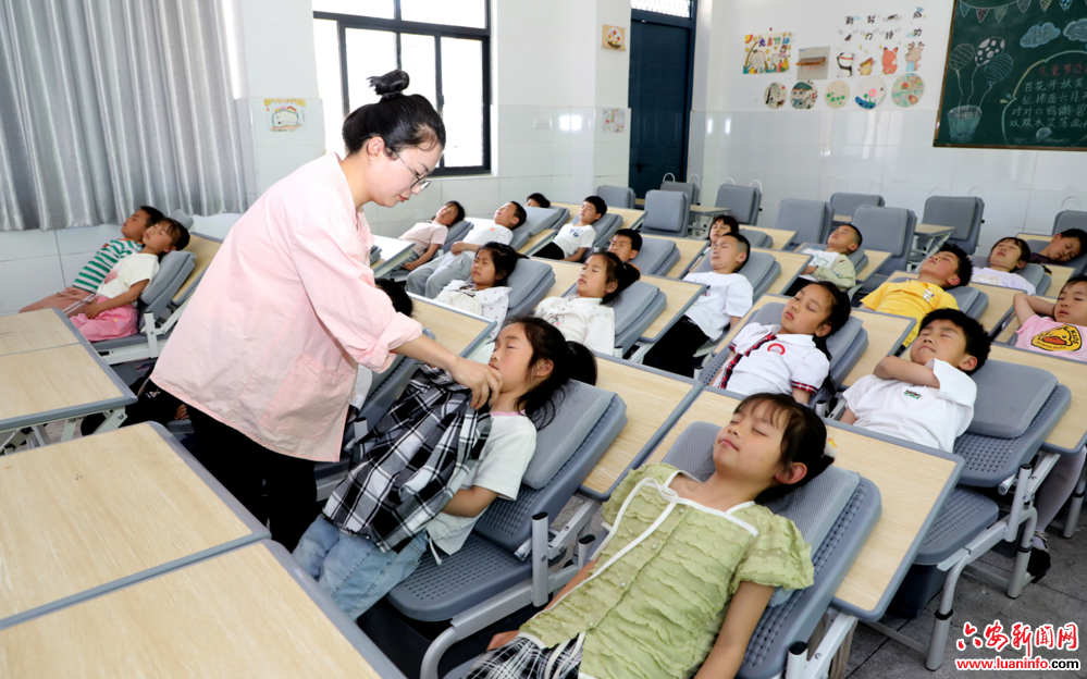 教室内,两侧窗帘拉起,孩子们舒适地躺在午休椅上午睡,有的还发出轻微鼾声……5月14日中午12时20分,记者在裕安区梅花小学二年级一班的教室内见到了这温馨一幕。
