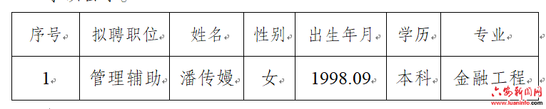 根据《2021年度六安市直部分单位公开招聘员额内编外聘用工作人员公告》的相关要求,经发布公告、报名、资格审查、笔试面试、体检和考察等程序,现将拟聘用人员情况予以公示。
