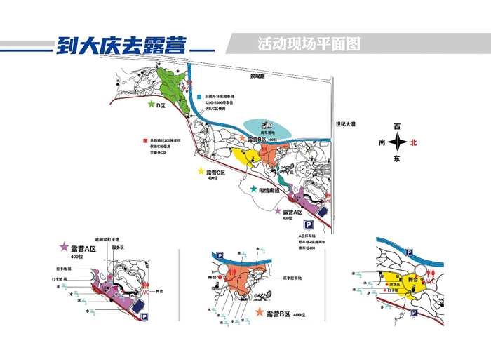 该区域6万平方米,设置露营点400个,关键词是协作、成长、阳光,以6岁—14岁儿童的学校组织露营人员为主,学校按片划分,每个露营群是个小团队,露营群间遥相呼应,便于群体游戏。