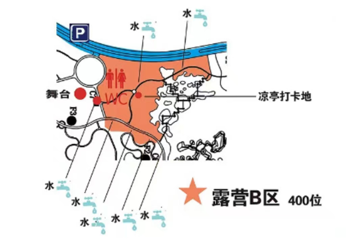 该区域5万平方米,设置露营点400个,营区关键词为时尚、动感、热烈,是以高中生和大学生等团体露营年轻人为主的区域,并配套设置有游戏、主题秀、电音活动等。