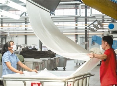 近日,在广西梧州岑溪市大业镇的西部(岑溪)创业园泰森新纺织产业集聚区某车间,染整智能生产线开足马力高效作业,工人们在岗位上忙碌,呈现出一片热火朝天的生产景象。岑溪泰森项目以数字化转型为主要发展方向,打造数字化转型“5G+智慧工厂”行业新标杆。
