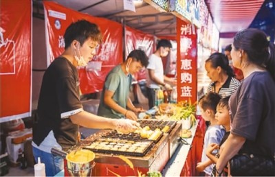 近期,湖南省永州市蓝山县开展促消费活动,拓展夜间消费业态,完善夜市配套服务,增添县城“烟火气”,推动“夜经济”持续升温。图为蓝山县三蓝广场夜市一景。