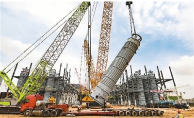 6月1日,在内蒙古鄂尔多斯润阳悦达光伏装备制造全产业链科技示范项目施工现场,工人们抢抓工期,稳步推进钢结构厂房建设和设备安装,确保项目如期建成投产。
