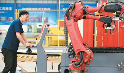随着新能源汽车消费市场逐步振兴,各种新能源汽车零部件生产供应也随之红火。图为江苏省宿迁市沭阳县经开区一公司车间内,工人们正在操纵智能机器设备生产新能源汽车零部件。