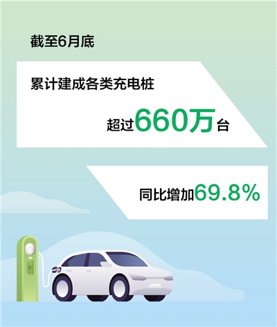 农村地区适度超前建设充电基础设施,只是我国充电桩建设的一个缩影。目前,我国已建成世界上数量最多、辐射面积最大、服务车辆最全的充电基础设施体系。中国电动汽车充电基础设施促进联盟发布的最新数据显示,截至6月底,全国累计建成各类充电桩超过660万台,同比增加69.8%。