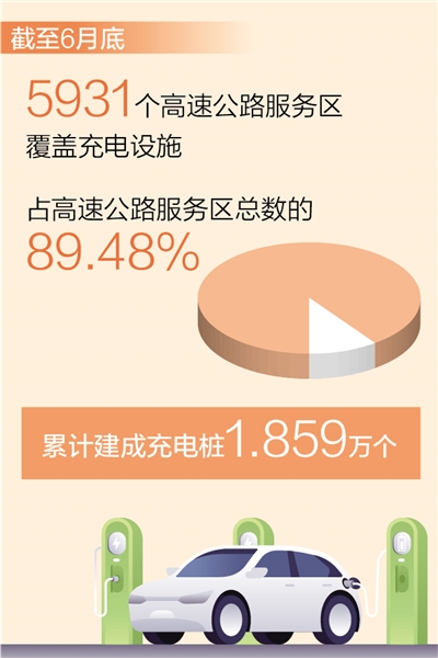 本报北京8月7日电 (记者韩鑫)记者近日从交通运输部获悉:按照“桩站先行、以供促需”的原则,近年来,我国充电基础设施建设取得显著成效。截至今年6月底,全国已有5931个高速公路服务区覆盖充电设施,占高速公路服务区总数的89.48%。