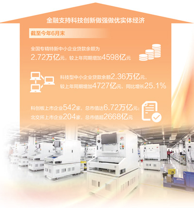 银行是提供科技信贷的主力军。近年来,我国科技型企业贷款持续保持较快增长速度。截至今年6月末,我国科技型中小企业贷款余额2.36万亿元,同比增长25.1%,连续3年保持25%以上的较高增速;全国专精特新中小企业贷款余额为2.72万亿元,同比增长20.4%,连续3年保持20%以上的增速。但由于创新活动往往投入大、周期长,仍有不少轻资产、无抵押的创新型企业存在估值难、交易难、变现难等问题,资产负债、销售规模、利润指标难以达到银行的授信标准。“看不懂”“摸不准”成为部分银行支持科技型企业的障碍。
