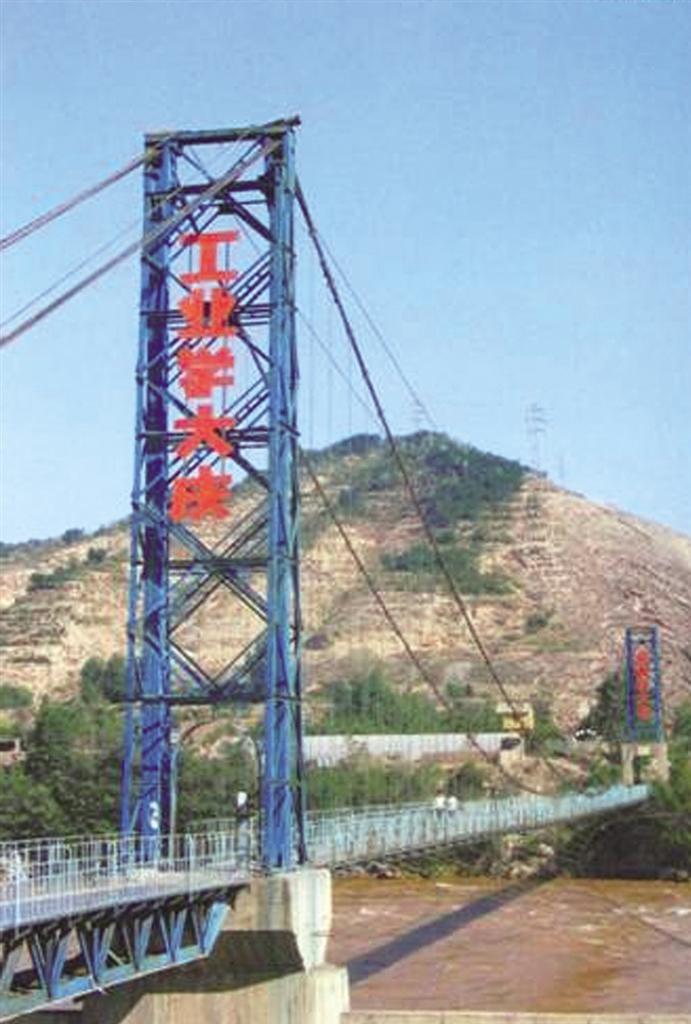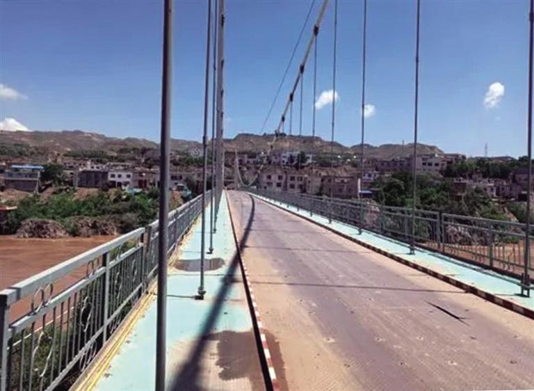 后因年久失修于2009年被禁止通行。2013年,皋兰县对现有悬索人行桥加固维修,保证桥梁整体承受能力、提高桥梁结构耐久性和实用性,恢复行人和小型车辆的通行功能。