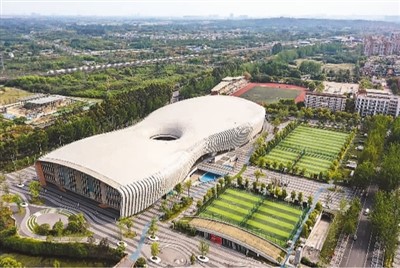 近年来,四川省成都市的市区体育设施更加完善,东安湖体育公园、高新体育中心、凤凰山体育公园等新建场馆拔地而起,“桥下空间”“屋顶空间”“街旁空间”等也被建设为市民运动好去处。图为成都市新都区的香城体育中心。