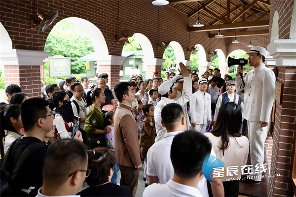 橘子洲人头攒动,天南地北的人们赶来与青年毛泽东雕像合影留念,树林掩映间,《恰同学少年》青春剧场悄然上演,先辈们在湖南第一师范求学探索的故事在这里生动诠释。第一师范天井回廊旁,学子们冒雨练习“六段操”;图书馆内,一则二十八画生的《征友启事》引发热议;蔡和森家中,他和同学妹妹一起教满伢子读书……随着剧情的推动,党员们化身不同班级的学生,被剧中演员引导步入多个场景参与各个环节的互动,练操、读书、作客,党员们仿佛成为那段历史的亲历者。