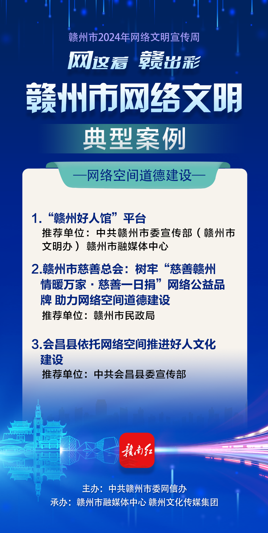 刚刚,赣州市2024年网络盛典揭晓七大奖项 编辑:高方勇 来源:客家新闻网 浏览次数: 次 发布时间:2024-04-26 09:59:04 【字体:小 大】 刚刚赣州市2024年网络盛典暨网络文明宣传周活动启动仪式盛大开启现场揭晓了赣州市网络文明6大类18个典型案例和赣州市网络文明达人名单一起来看 扫一扫在手机打开当前页 【打印正文】 相关信息 上一篇:看汤尤,游成都 [ 2024-04-26 ] 下一篇:网这看 赣出彩!赣州市2024年网络盛典启幕 [ 2024-04-26 ]