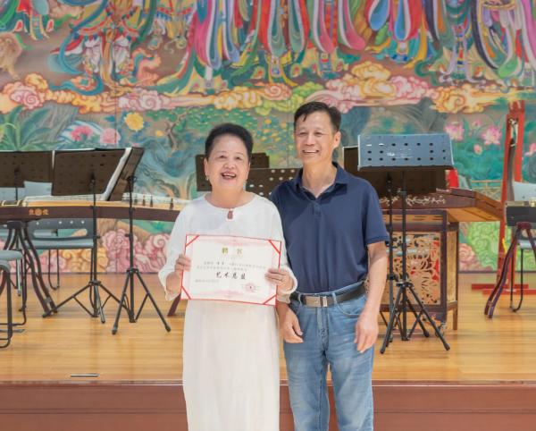 浙江省民族管弦乐学会会长刘建宽为老艺术家傅丹颁发艺术总监证书