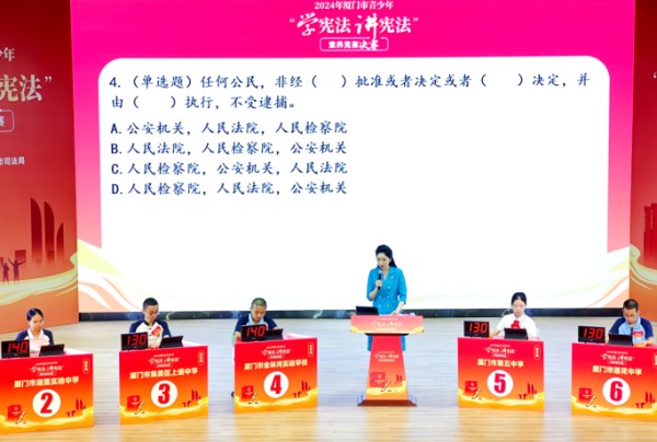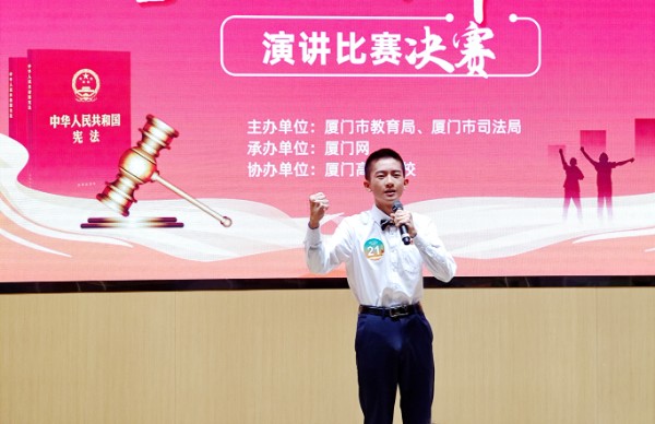 厦门网讯(本网记者 沈伟彬 马庆伟)弘扬宪法精神,争做守法卫士。8月25日,2024年厦门市青少年“学宪法 讲宪法”演讲比赛和素养竞赛现场决赛在厦门高新学校顺利举行。本次比赛不仅是一场法治教育的盛会,更是青少年法律素养和精神风貌的一次集中展示。