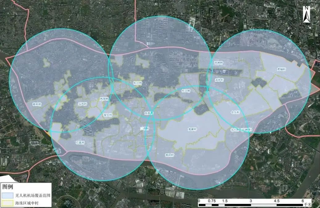 海珠区无人机机场全覆盖布设图。图源:自绘