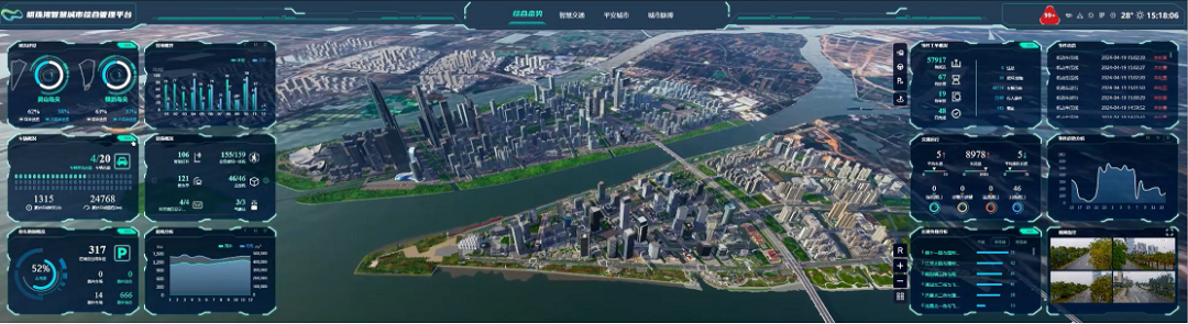 全国首个全空间全要素无人体系超级示范应用场景落地南沙灵山岛尖。图为明珠湾智慧城市综合管理平台,其已实现与无人车等无人设备的互联互通。