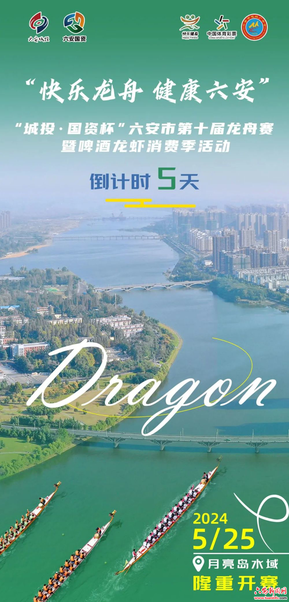 倒计时5天!六安市第十届龙舟赛暨啤酒龙虾消费季活动即将火热开赛 编辑:杨庆云 来源:本网原创 浏览次数: 次 发布时间:2024-05-20 10:36:09 【字体:小 大】 扫一扫在手机打开当前页 【打印正文】 上一篇:【龙舟赛直播预告】锁定直播间,带您线上“云”观赛! [ 2024-05-20 ] 下一篇:【记者观察】六安地下商业街焕新记 [ 2024-05-21 ]