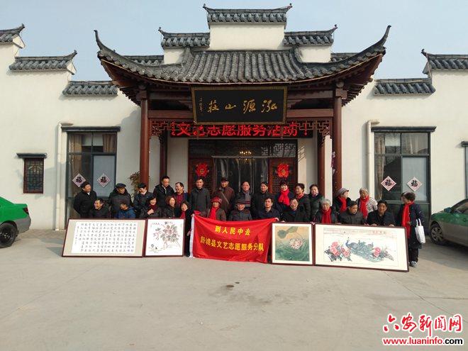 12月25日,舒城县老年大学书画院的书画师一行20多人,在舒城县文联主席张克武和舒城县老年大学校长束永琛的带领下,冒着寒风,轻车简从,深入春秋乡文王村开展文明简朴的书画赠送活动,向该乡泓源山庄和文王村共赠送书画26幅,从而受到当地干部、群众的欢迎和感谢。