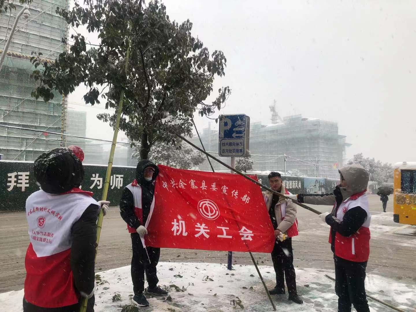 寒风凛冽,大雪纷飞,一场铲冰除雪护绿保安全的大行动正全城上演!为高效应对冰雪灾害,保障人民生命财产安全,维护城市运转秩序,配合有关部门做好抗雪防冻工作,金寨县各级机关积极响应上级号召,迅速与县城管局、包保小区和路段等一线部门联系,提供志愿服务应急工作,支援一线除雪抗冻队伍力量。