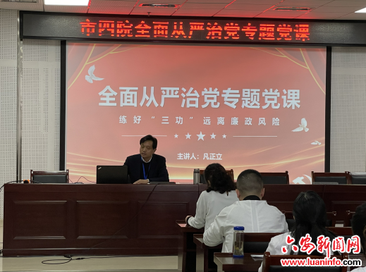 凡书记从“练好思想上的“内功””、“要有守住廉洁自律的“防功””、“要有划清公与私的“硬功””三个方面带领大家学习全面从严治党重要论述,深度剖析医疗卫生系统腐败典型案例,以案警示、以案说纪、以案说法,让党员干部职工充分认识到政治纪律和政治规矩的重要性。