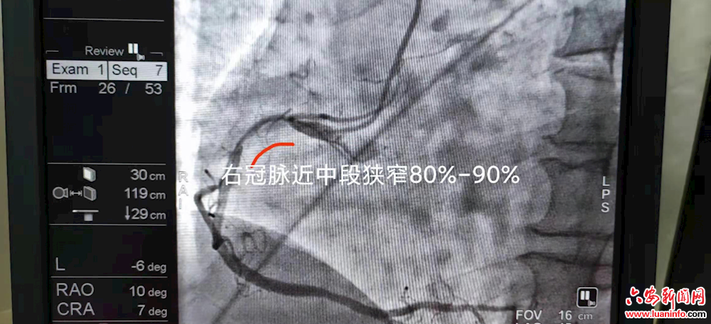 该患者因反复发作胸闷、心前区疼痛不适;既往有长期抽烟史以及高血压病史,入院后考虑冠心病,为明确诊断,7月14日,行冠脉造影检查;视频中可见其前降支中段血管狭窄达90%,且成弥漫性;右冠近段可见管状狭窄达85%;有支架植入指征,在胡主任指导下分别处理前降支及右冠,植入4枚支架,手术顺利,整个手术用时不到1小时,术后患者胸痛症状消失,且无任何不适,全程微创操作,无出血、感染等并发症,术后第三天即可痊愈出院。