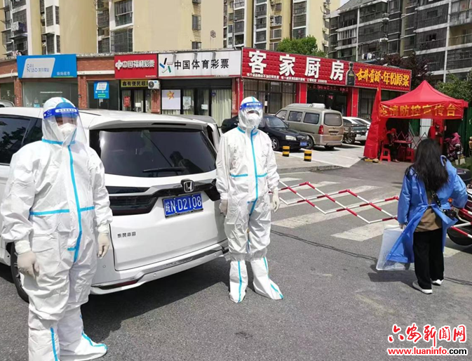 4月14日下午14日30分,紧急支援裕安区天盈社区,并捐赠医用防护、医用防护面罩、医用手套、口罩及方便面、饮用水等物资。
