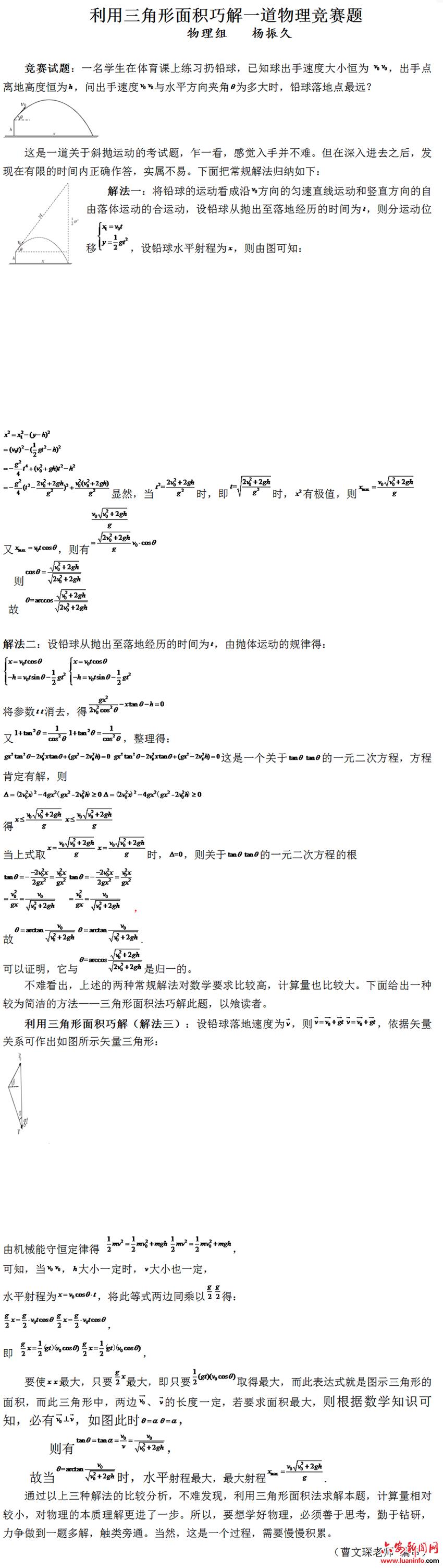 杨振久:利用三角形面积巧解一道物理竞赛题