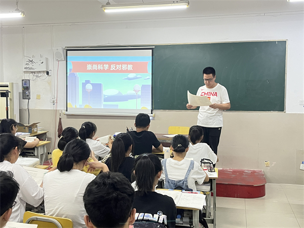 通过在学校的主题班会课上开展普法和反邪教宣传活动,有助于进一步净化校园环境,切实提高学生的识邪、防邪、拒邪的能力,营造出浓厚的校园反邪教氛围,让法制文化厚植于校园文化的土壤中,增强了学生的法制观念。(黄增光)