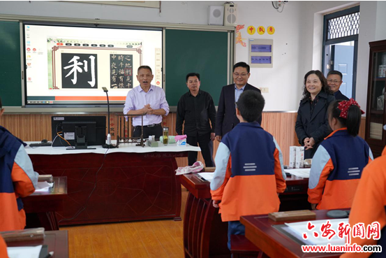 10月24日,裕安区政协主席聂贵廷一行前往六安市裕安区梅花小学,视察区政协书画研究院书画进校园活动。区政协副主席陶晓婉、政协秘书长余玉亮、政协书画院院长杨旭陪同。