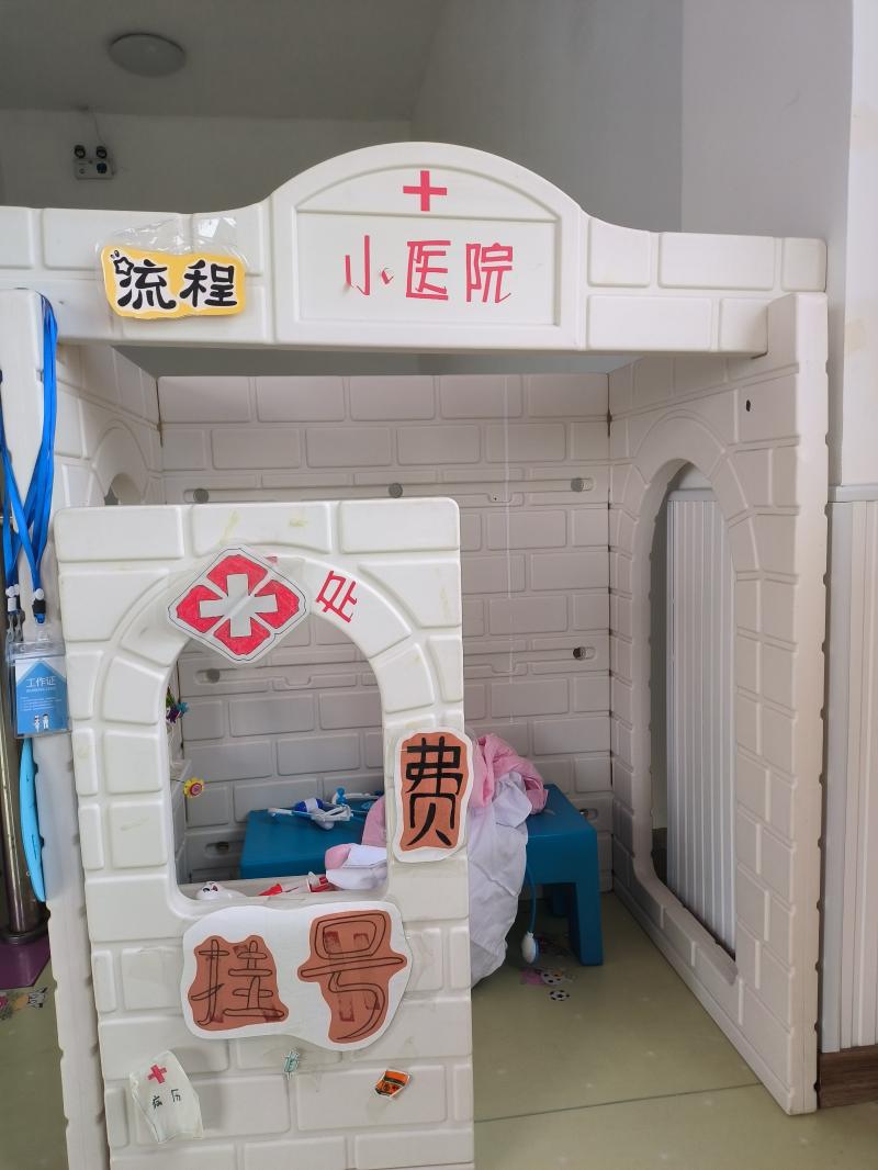 环境无声,教育有声。各班教师根据本班幼儿的年龄特点、身心发展需求、兴趣爱好,巧妙布置出与班级主题相融合的创新性环境。小班以黄色、白色为主要色调,创设出了一个可爱活泼的班级环境;中班以蓝色和白色为主要色调,教师与幼儿一起将医院“搬”进了教室,同时融合了班级生成活动,让一群独一无二的“小医生”在班级中“就诊”;大班幼儿则成为“娃娃超市”的主角。一点一滴皆用心,一角一落皆教育。一面面会“说话”的主题墙上记录着幼儿学习的痕迹;一面面能“互动”的生活墙上展示了幼儿成长的脚印;一个个妙趣横生的区域呈现出了幼儿游戏的印记,都表达出了环境对幼儿“润物细无声”的教育作用。