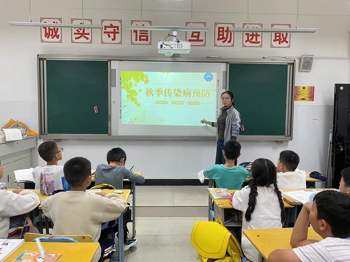 该校利用电子显示屏、宣传栏、公众号等形式多渠道全方位向学生宣传预防秋季传染病的基本知识。