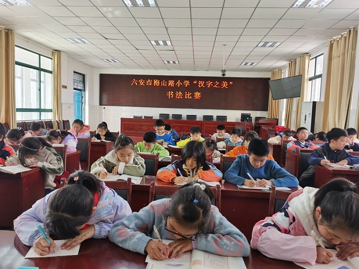 为贯彻落实“双减”和五项管理政策,全面、立体展示学生校园生活,促进学生身心健康成长,感受汉字魅力,传承文化精髓,提高学生写字水平,11月14日至15日,六安市梅山路小学开展了为期两天的“汉字之美”书法比赛。本次比赛分为硬笔和软笔两种形式。