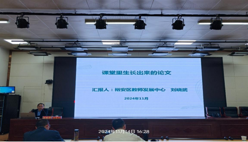裕安区教师发展中心副主任刘晓武以丰富的学术经验和深入浅出的讲解,为教师们带来了一场知识的盛宴,作题为《课堂里生长出来的论文》写作报告。刘主任以“为什么要专业写作”为切入点,围绕“上一节课,写一篇论文”“听一节课,写一篇论文”“读一本书,写一篇论文”“研一套卷,写一篇论文”“攻一个专题,写一篇论文”五个方面解决老师们撰写论文过程中的困惑,提出了许多在教科研路上可行的方法与方案,对教师专业精进和学术提升上具有重要的指导意义。