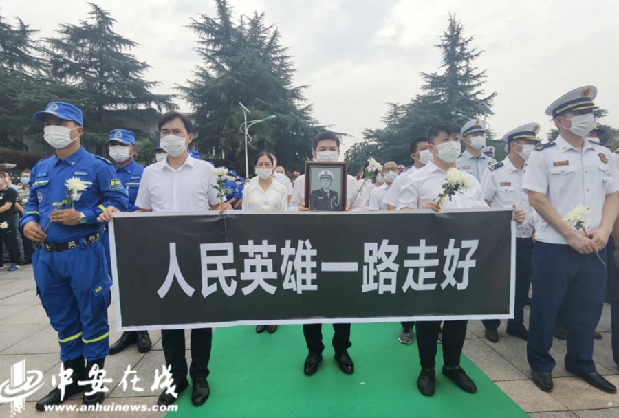7月30日上午9时,烈士陈陆遗体告别仪式在合肥殡仪馆举行,千余名社会各界人士前来送英雄最后一程。